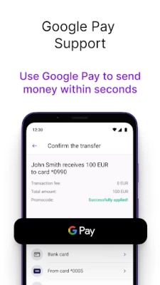 With Profee, you may choose convenient sending and receiving methods. Send money online from your bank cards?, as well as from Google Pay wallet?, or choose some other payment methods that vary from country to country.
