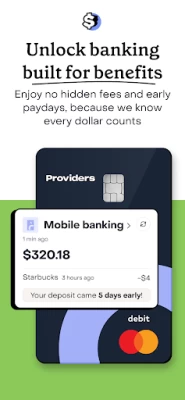Your paychecks arrive up to 2 days early if you set up direct deposit on your Providers Card mobile banking account.