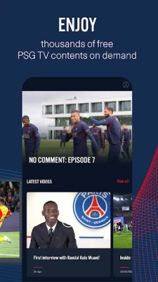 Discover PSG's latest shows and originals and enjoy thousands of free contents anytime, anywhere, in the app and also on your TV with our native Chromecast integration: interviews, full-match replays, highlights, goals, reactions ...