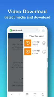 Pure Browser может дать вам отличный опыт просмотра в небольшом размере пакета: это легкий браузер, без добавления рекламы, без push-уведомлений, без фоновой службы, без сбора пользовательских данных, он особенно полезен для пользователей телефонов Android с более низкими характеристиками и меньшими характеристиками. Место для хранения.