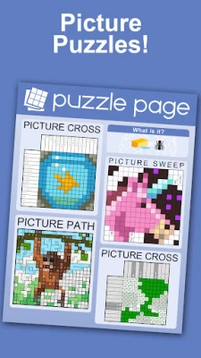 Puzzle Page includes over 20 varieties of puzzle including classic brain teasers like Crossword, Sudoku, Nonogram, Wordsearch and Codeword with new puzzle types added regularly.