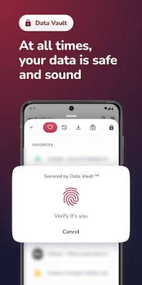 All your browsing data and files undergo encryption, securely stored in the Data Vault, and are protected by your biometrics. Even if someone gains access to your phone, they won't be able to reach your data.