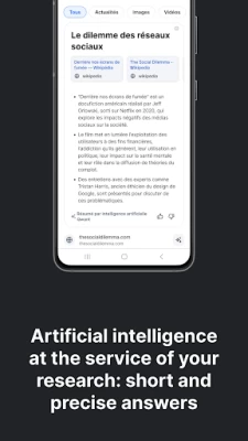 On smartphones, the Qwant application goes beyond its search engine function and becomes a browser! In addition to respecting its users, the Qwant app offers relevant results in an instant and allows for smooth, fast navigation with integrated AI. This quality of service also results in search results that only reflect the keywords used and not your search history.