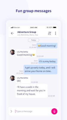 You can create chat groups with other Rakuten Link users for up to 100 people, and share photos, videos, and documents, as well as messages.