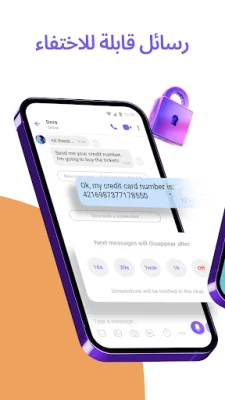 أرسل رسائل قابلة للإختفاء في محادثاتك الفردية 1 إلى 1 والمحادثات الجماعية عن طريق تعيين مؤقت لكل رسالة. يمكنك اختيار مدى توفر الرسالة بعد فتحها - 10 ثوانٍ، 1 دقيقة، أو حتى يوم واحد!