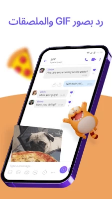 شخصّ محادثاتك! كن مبدعًا مع فلاتر فايبر الممتعة والمضحكة والمزينة. تنتظرك أيضًا GIFs وأكثر من 55,000 ملصق - يمكنك حتى إنشاء ملصقات خاصة بك.