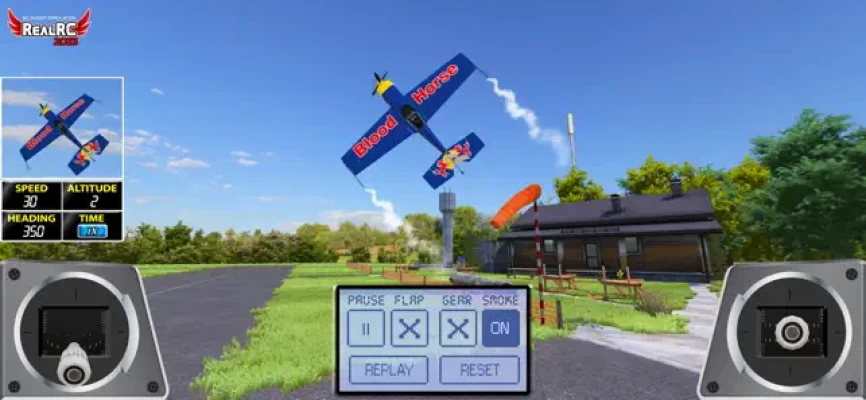 We included the virtual RC Controller on the screen fully configurable and a physics algorithm very close to what you can do with your real RC plane.