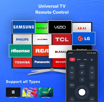 Would you like to maximize your TV viewing experience? Universal TV remote control for all types of televisions. With TV remote control app, your Android device can become a remote control for a wide range of TV brands and models, including Smart TVs, TV remote Samsung, LG TV remote, Android TV, remote for Roku TV, remote for Sony TV, and more. Universal TV remote control app to control both Wi-Fi-enabled Smart TVs and Non-Smart TVs that use an IR Blaster.