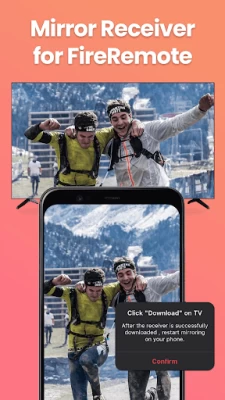 2. Click "Mirror" to enter the mirroring interface and choose to download our receiver app, Screen Mirroring Receiver for Fire TV, on the TV device per the prompt message.