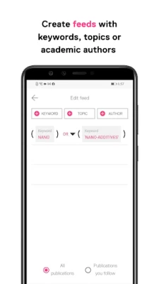 Personalise your app. Set up feeds to show paper abstracts including your chosen keywords and authors so you can easily discover what matters to you.