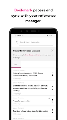 The only tool you need to stay up to date. With keyword and author feeds, notifications, trending papers, bookmarks, institutional access and syncing with Mendeley or Zotero, staying on top of the latest scholarly literature has never been easier.