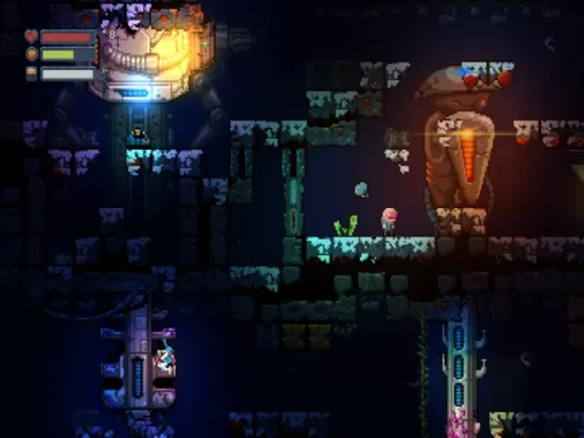 Residual welcomes players to a non-violent survival experience with limitless possibilities and no traditional combat. Jump and descend through colorful, highly detailed pixel art evoking classic 2D platformers. Solve light puzzles to reveal secrets of a long-lost civilization. Select a male, female, or non-binary protagonist, customize survival parameters like how fast time advances, and race to repair the ship, dig up ancient secrets, or collect data entries on hundreds of undiscovered objects.