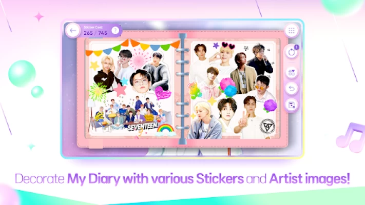 Create your own Diary theme consisting of album covers and cute and cool moments of Artists, and decorate it with stickers!