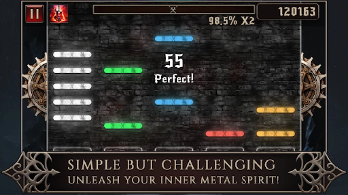 Try Rhythmetallic – heavy metal tap music rhythm game and enjoy unlimited metal guitar rhythms! This tap tap music hero guitar game leads you on a fun music tapping adventure filled with original heavy metal and rock guitar music that is sure to satisfy your taste. Enter the arena to have the excitement of a real Guitar Band Rock Battle!