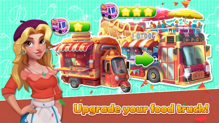 In this game you will follow the view of a freshman chef Rita, enjoy the fun of cooking and operate different truck restaurants. You should try your best to cook various kinds of food, earn more coins to upgrade your kitchen and ingredients, in order to provide better service to customers.