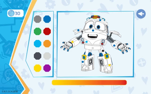 Duke, Mos and Dos have made a big mess again. This time, they have launched a rocket with wind and water energy that has caused a great snowstorm. If we don’t do something immediately, Railworld is in danger. And only the Robot Trains can save it launching a rocket which contains a bit of 4 energies ―Water, Wind, Fire and Light― against the snowstorm.