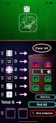 - A 'Last Roll' Button immediately repopulates dice of any value with a single tap.
