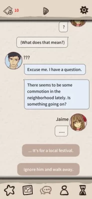 The game progresses through dialogue and your decisions determine Jaime’s destined match.
