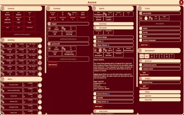 -Record your character's features in a digital sheet. You can select an advanced template for pathfinder 2nd edition and D&D 5th edition or a simple and flexible table system