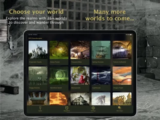 RPG Sounds Fantasy Worlds is an ever growing collection of generative procedural RPG Fantasy Worlds Soundscapes with optional light scripts and light effects when connected to Philips Hue or IKEA® TRÅDFRI. (Also works without lights).