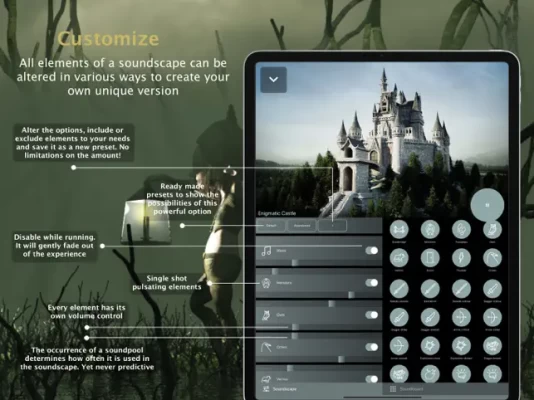 Our unique node based soundscape engine, which is behind the beautiful designed and intuitive user interface uses techniques which are used by top game designers and audio engineers to mimic nature's way and randomness.