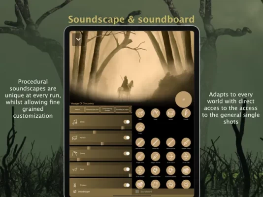 High quality audio samples curated by experienced sound engineers and brought to life with our SoundScape engine. It's a truly innovative and immersive way to add soundtracks to your tabletop games or other RPG gatherings.