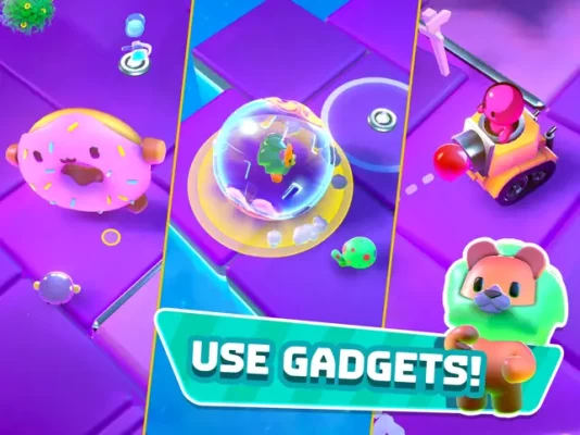 Fly in on Captain Punch’s Sky Yacht, get bopped into the arena, find silly gadgets to battle with, and survive the dropping floor and shrinking battlefield to be the last player standing! Are you ready to punch your way to victory and reach a win as an ultimate champion?