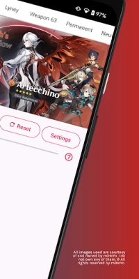 All images, sounds, assets, banners, character names, terms, etc, are courtesy of and owned by miHoYo. I do not own any of them. I am making this wish simulator purely for fun and entertainment purposes! Materials used are in accordance to legal terms published publicly by miHoYo at https://www.hoyolab.com/article/143107. © All rights reserved by miHoYo. Other properties belong to their respective owners.