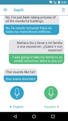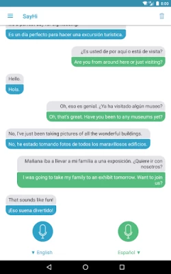 Instantly speak another language, for free, with SayHi Translate on Android! Have a conversation in two languages and hear your voice translated instantly.