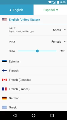 Quickly change languages, choose male or female voices (where available), and speed up or slow down the rate of speech