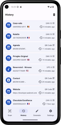 • Keep track of all your scanned barcodes with the history tool.
