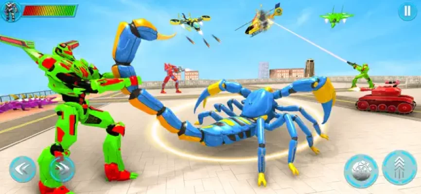 Fight for Justice with Scorpion Robot & make Transformation into Tanks, Cars, Drones, or Helicopters.