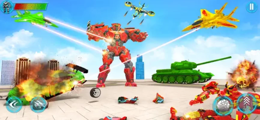 The robot is a survivor of the city, he saves the city from enemy attack by transforming into different shapes like Tank, car, drone, or helicopter to defend the enemy in the war and win the war against enemies to fight.