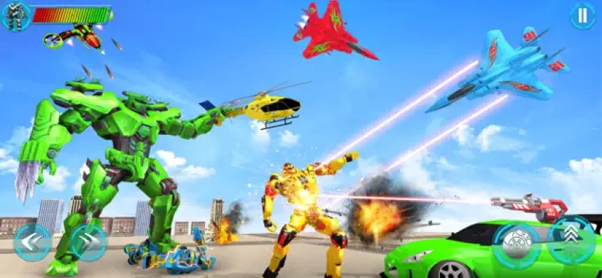 Save the city from the War Robots Enemy's attack. Transform into Multiple Robots, Scorpion Robot, Tank War Machines, Super Cars, Monster Trucks, Helicopter, Drones and many more. Shoot Evil Robots and the most Powerful Boss Enemy and become the transforming robot destroyer.
