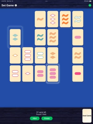 Set is a card matching game. Finding sets by determining the 4 features of cards. A set is any three cards that each of their features is either all the same or all different.