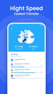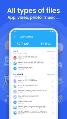 ShareFile - Share File & File Transfer satisfies all your transfer needs perfectly. Just select videos, photos, music, contacts, apps & e-book, pdf files or anything, it will stably transfer them to your friends at a lightning speed, even without the network.