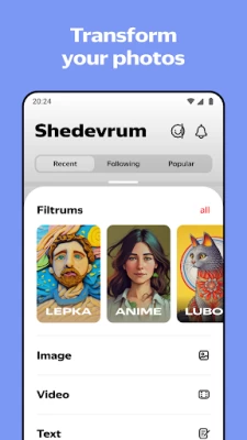 Write anything in English or Russian, and the Yandex neural network will turn what you describe into a picture, video, or text. Or transform your photos using filtrums. It's completely free! Just download the app and dive into the world of digital art.
