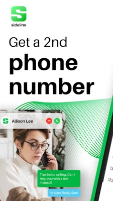 With Sideline, you’ll get more than just a second number; you’ll get a full-featured calling and texting app that lets you organize your contacts, reply automatically to missed calls with a text message, and much more. Download Sideline today!