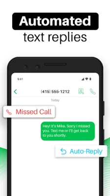 - Automatically reply to missed phone calls with a customizable text message
