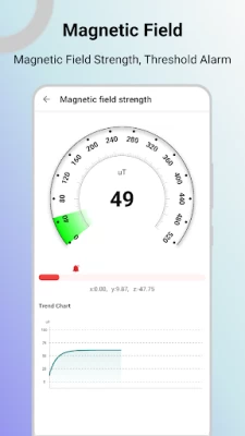 5. Sensor information: Obtain all available sensor devices on the device and read their current value, power, accuracy and other related data in real time. And used for practical applications, such as thermometers, compasses, light meters, barometers, etc. for actual measurement.