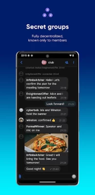 - end-to-end encrypted messages, with editing, replies and deletion.