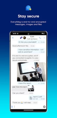 You can connect to anybody you know via link or scan QR code (in the video call or in person) and start sending messages instantly - no emails, phone numbers or passwords needed.
