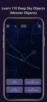 - NEW! 153 levels teach, train and test your knowledge of 110 Deep Sky Objects (Messier Objects).