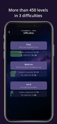 Easy levels show the lines of the constellations, making the experience less similar to the real night sky, but it's the first step of learning.