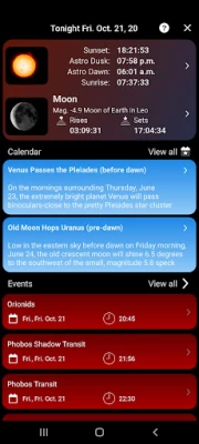 + Sky Tonight - jump to the new Tonight section to see what’s visible in your sky tonight. Expanded information has been designed to help plan your night and includes Moon & Sun info, calendar curations, and the best positioned deep sky and solar system objects.