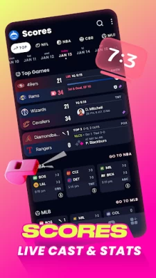 - Real-time stats and scores for the NBA, NCAA, NHL, MLB, NFL, and more