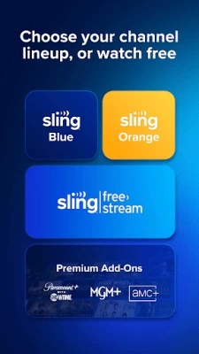Choose from three base subscriptions. Sling Orange offers 30+ channels perfect for families and sports fans for $40/mo. Sling Blue offers 40+ channels perfect for entertainment and news for $40/mo. Sling Orange & Blue gives you every channel from both packages for $55/mo.