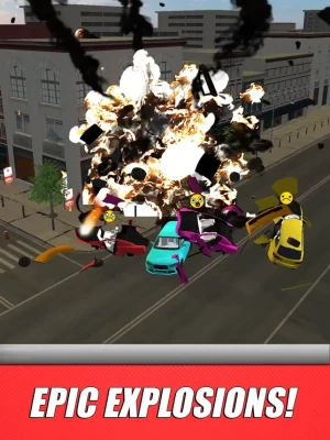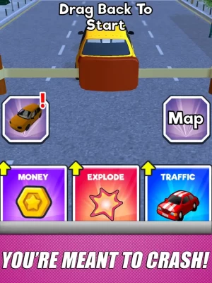 The more damage you cause by crashing into traffic, the more in-game money you get. Use it to upgrade traffic, explosions and money, earn more and destroy more! The explosive action fuels itself - the more you crash, the better your chances of crashing more!