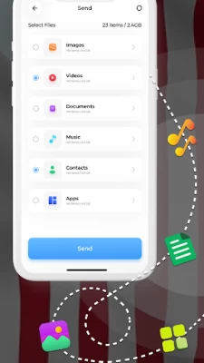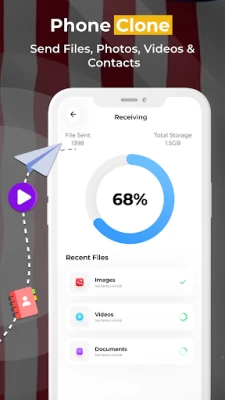 Phone clone data transfer app utilizes all types of file formats. Smart Phone transfer app backup all the content of Android. Fast phone clone- a data sharing app is beneficial to copy my data content transfer app that moves all the data from one device to another. Using a smart Data transfer simplifies the process of transferring data from one device to another. You can use the Transfer My Data app for easy transfer between smart phones. Effortlessly transfer all data to your device with the Smart Data Transfer- phone clone app.