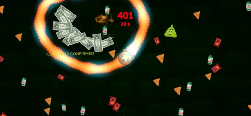 You spawn as a small snake, and your main goal is to eat and survive. If others run into you, they will explode, and you can pick up dollars that fall on the ground!
